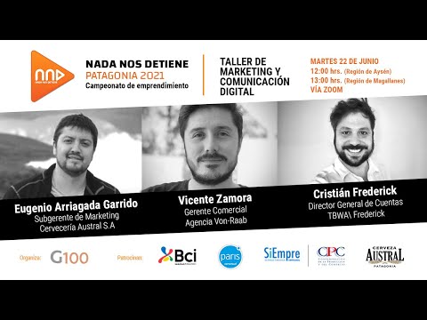 Eugenio Arriagada, subgerente de marketing de Cervecería Austral; Vicente Zamora, gerente comercial de agencia Von-Raab; y Cristián Frederick, director general de cuentas TBWA\ Frederick, lideraron esta actividad dirigida a los 30 participantes en el campeonato de emprendimiento Nada Nos Detiene Patagonia 2021.