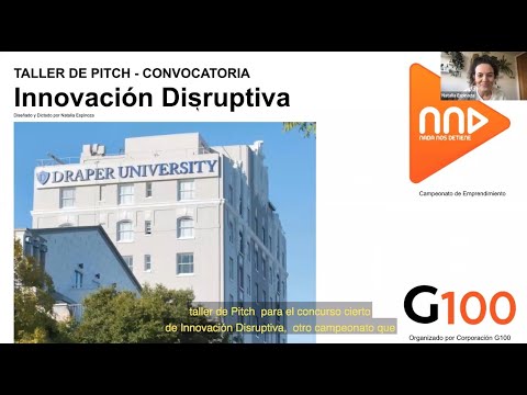 Natalia Espinoza, fundadora y gerente general de Papinotas e integrante G100, explica cómo analizar y potenciar las herramientas verbales y no verbales para aprovechar al máximo el tiempo y realizar un mejor pitch. Este taller es parte de la preparación para dar que los emprendedores dieran su pitch de 1 minuto frente al comité evaluador por la posibilidad de ganar la pasantía en Silicon Valley.